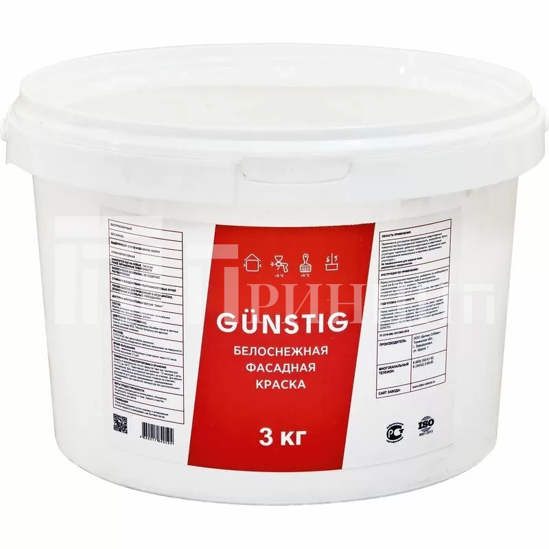 GUNSTIG Белоснежная фасадная краска 3 кг