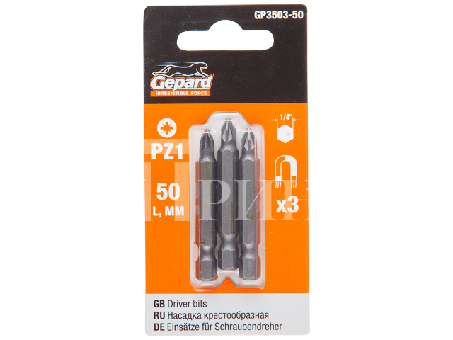 Насадка крестообразная РZ1 50мм 3шт GEPARD (биты)