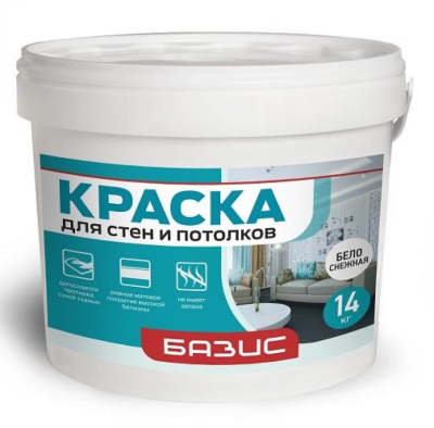 Краска д/стен и пот. белоснежная Базис 14 кг