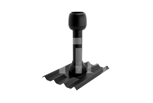 Особенностью данной вентиляционной трубы является ее устойчивость к погодным условиям: она препятствует проникновению дождя, снега и других атмосферных осадков, защищая подкровельное пространство от избыточной влажности. Благодаря черному цвету, она гармонично сочетается с кровлей, сохраняя эстетический вид кровельной конструкции.