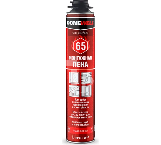 Полиуретановая монтажная пена профессиональная огнестойкая всесезонная Donewell 65 — это высококачественный продукт, предназначенный для профессионального использования в строительстве и ремонте.