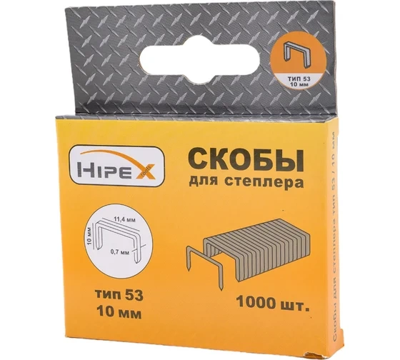 Скобы HIPEX типа 53 длиной 10 мм – это идеальный выбор для тех, кто ищет надежные и качественные запасные скобы для степлеров.